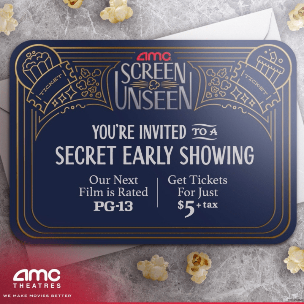 Looks like AMC offers a “Screen Unseen” event for never-before-seen films for $5.00 which is less than my microwaved bag of popcorn.