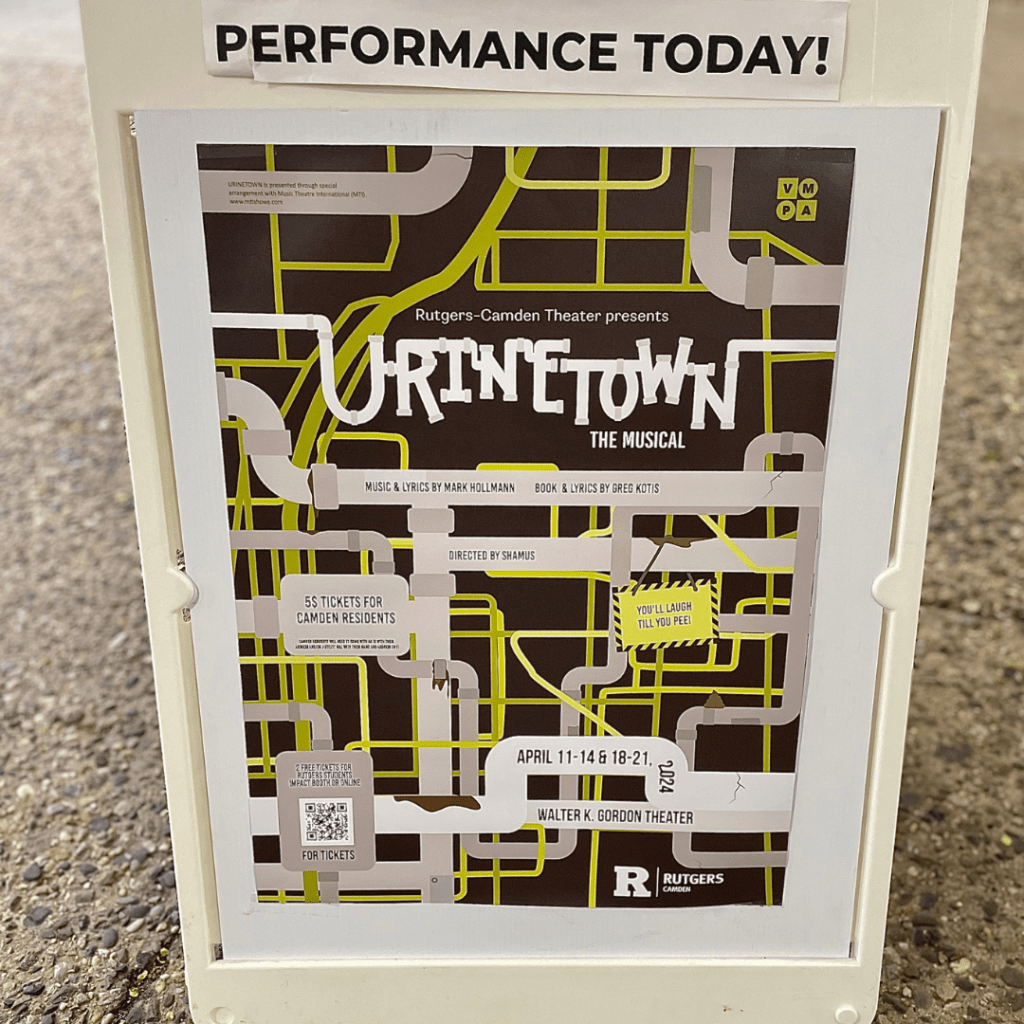 We had a blast and can’t wait to do our next one. Interested in learning more about Rutgers-Camden Theatre and Urinetown visit here for more details. If you make it to a showing of Urinetown, let us know what you think.