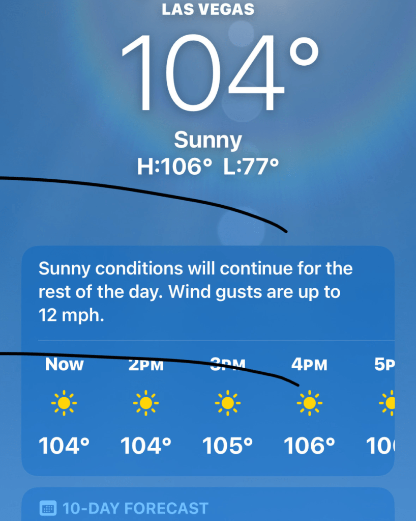 I’m no punk and every bit a Jersey Girl. I thought I could hang in the Nevada heat for some delusional reason. But the heat in New Jersey is not desert heat! There’s a reason the flights to Vegas are dirt cheap in August.